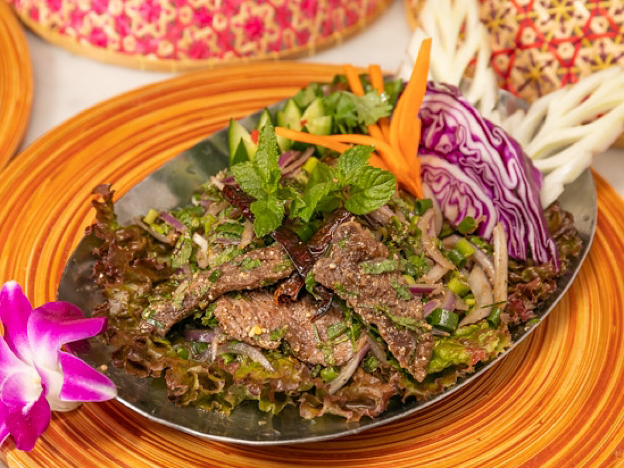 使用日本最顶级的黑毛和牛,泰国东北部的乡土料理。使用炒糯米,粉辣椒,香叶等多种调味料制作出具有清爽口感的酸辣味牛肉料理,引爆您的味觉感受。