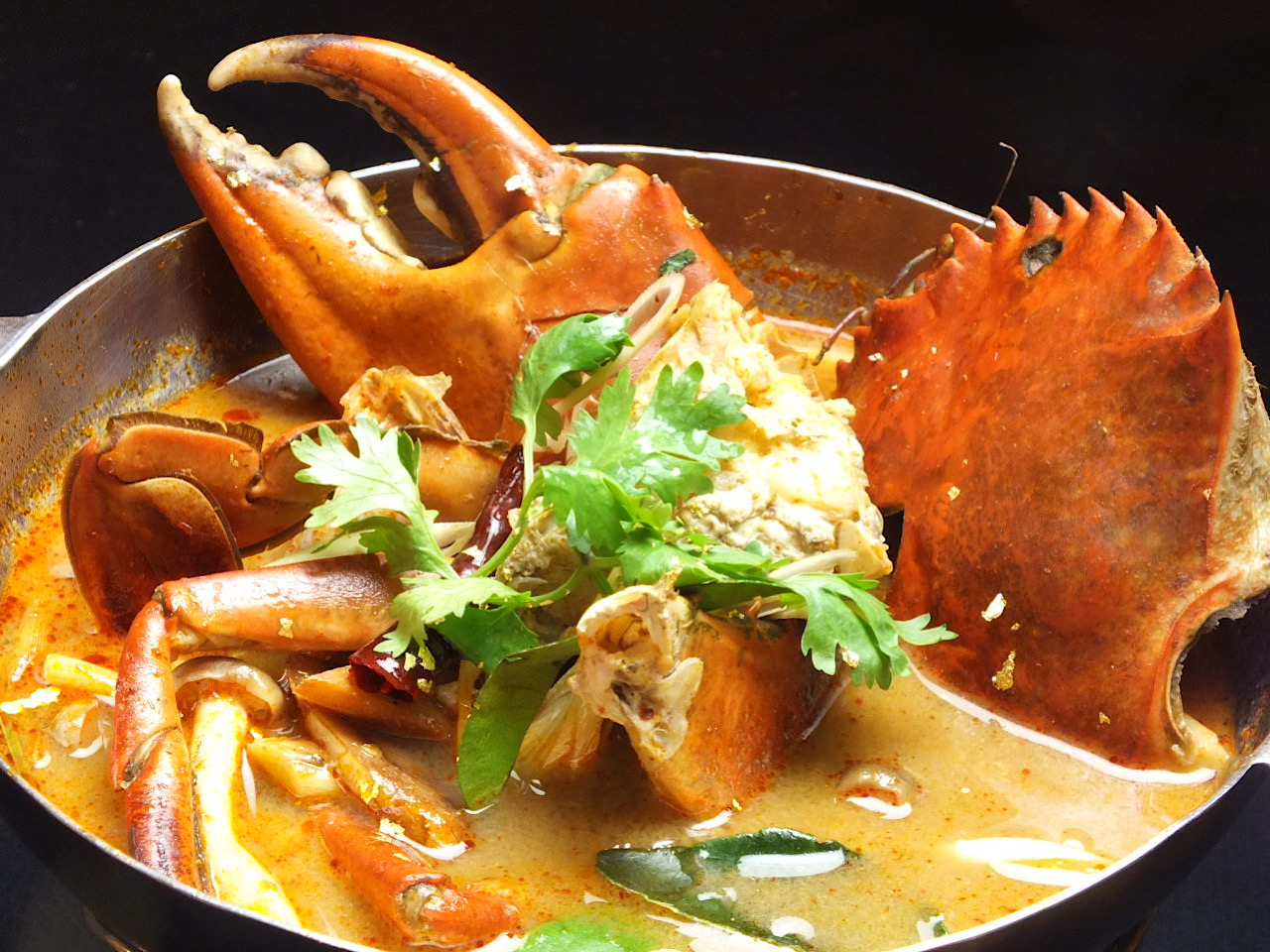 食材采用的是一种最美味的螃蟹,青蟹。蟹肉紧实甘甜,冬阴功汤底浓郁味美。